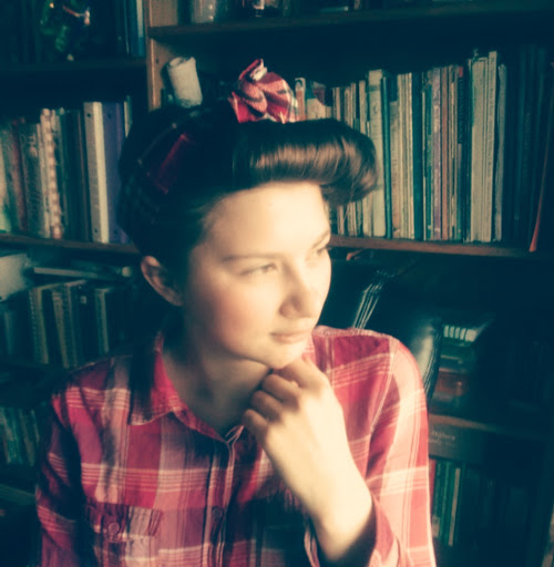 This is not be a vintage style, but my hair is curled and bobbed and the backdrop is just too rustic!!! It was taken in the summer.