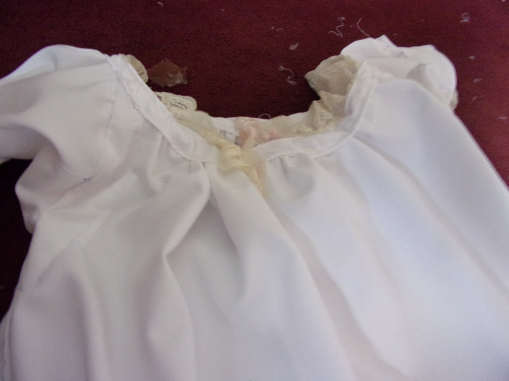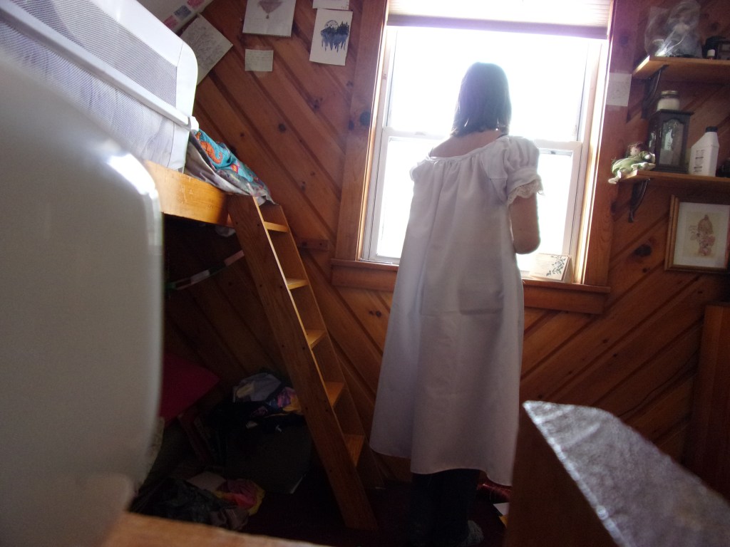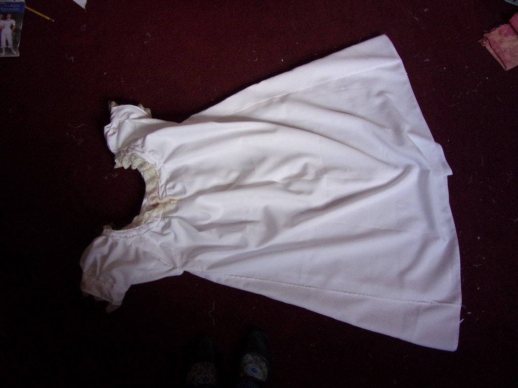 First off this was one of my first ‘sewing endeavors’ without someone’s help and that made it all the more exciting. Now when making a chemise you are supposed to have a light cotton material, I used a rayon-like heavy fabric which was, thick, and had no shape. Not to mention loved to come unraveled.