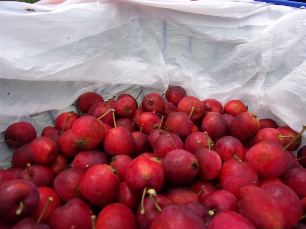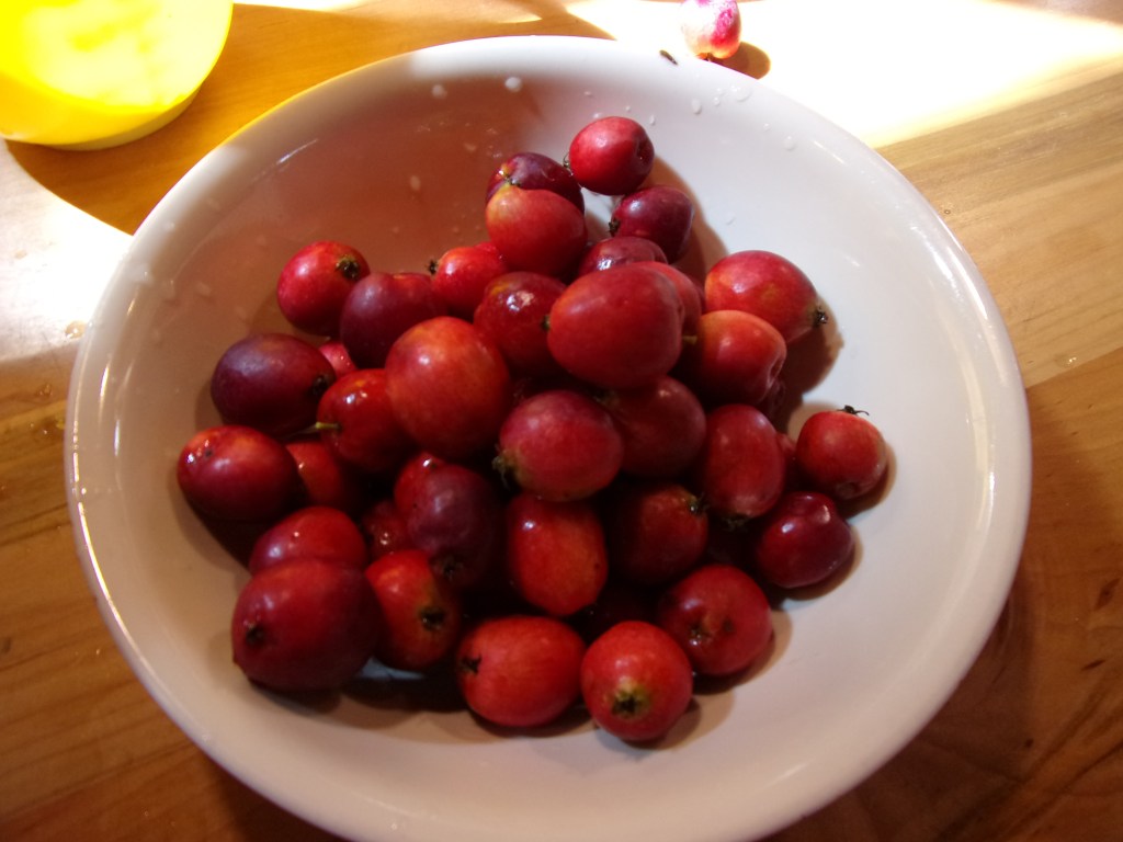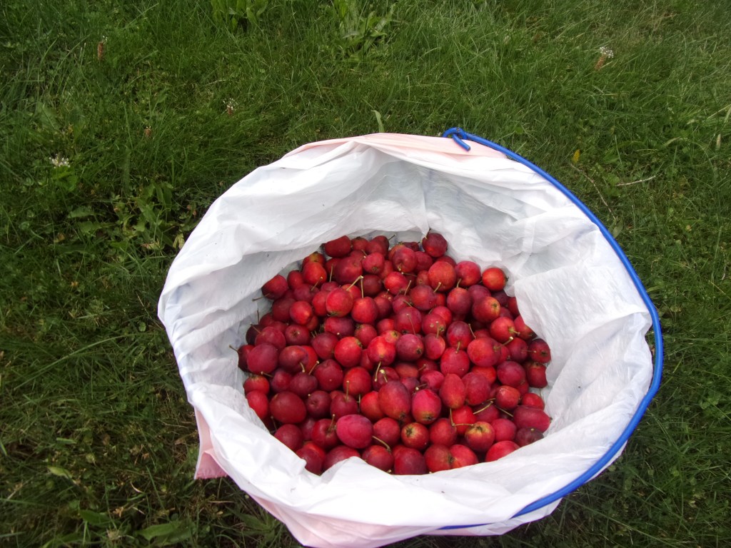 While I really liked this recipe, I would likely not try to make it, just because I wouldn’t have the patience.:) I would really enjoy it if you did it the old fashioned way though. That would be really neat! I don’t know if this would work or not, but I thought it would be tasty cooking some of the verjuice with meat. And, lastly, I have never tried to carry crabapples on my bike, but I have carried rakes, buckets, water bottles, weedwackers, and all sorts of other things. 🙂