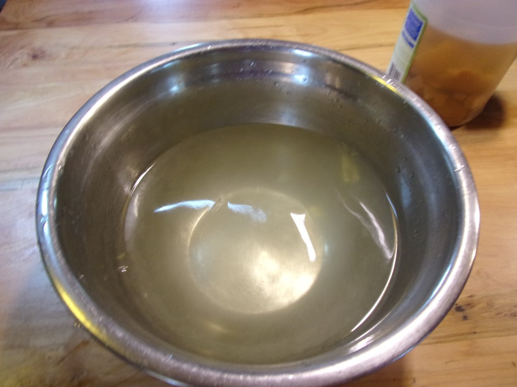 After I had refilled my basket and walked it and my bike home I got set up in the house. I had to clean them so I splashed a bit of vinegar in a container then filled it up the rest of the way with water.