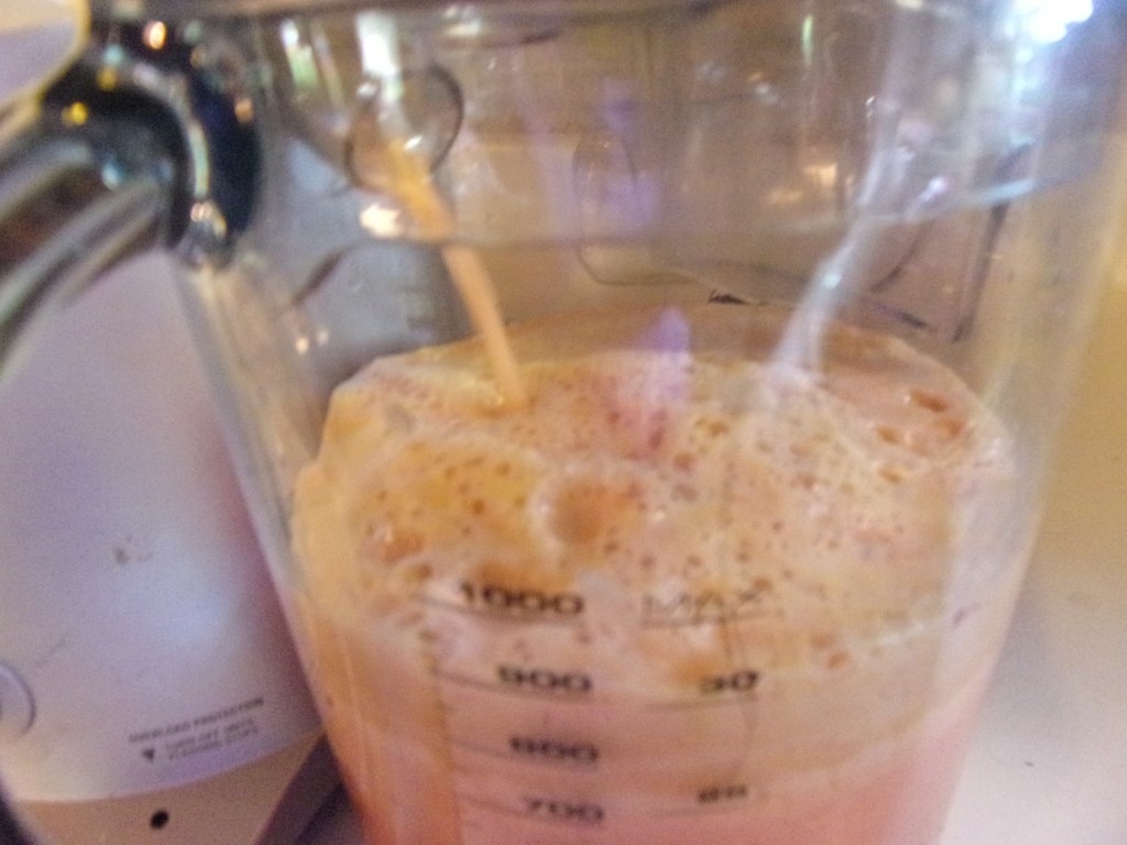 Now for the excitement ….popping them in the juicer (if you don’t have a juicer you can put them in a food processer and grind and then put them in a cloth and strain out the liquid)