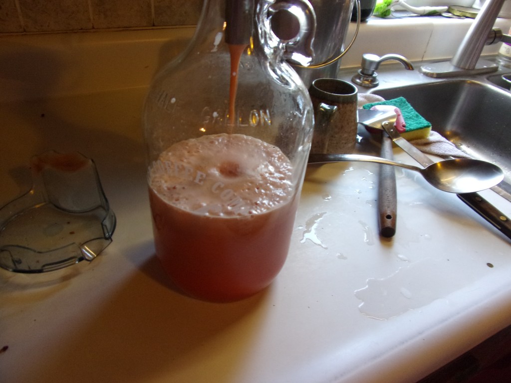 Meanwhile I sanitized my jar and then poured the juice into it.