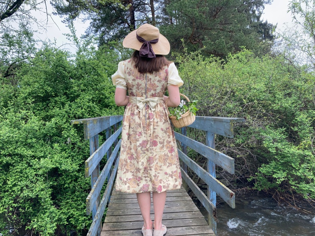 I came across the curtains for this dress at our very local thrift store. With my upcoming move and all, I wanted to be thrifty with what I spend money on. So I decided to check out the store to see if there was any good fabric options. When I can across this curtain it just screamed…well, curtain 😂. So I decided, why not make a ‘Sound of Music’ inspired curtain dress? After all it would be the perfect type of outfit to where for my party!!!