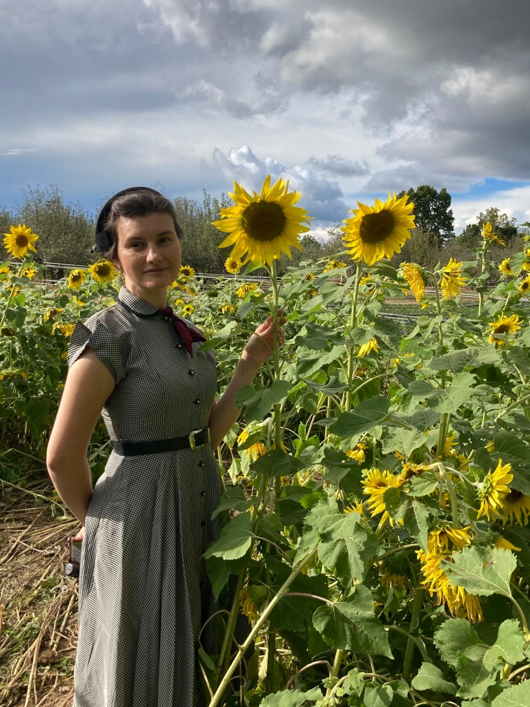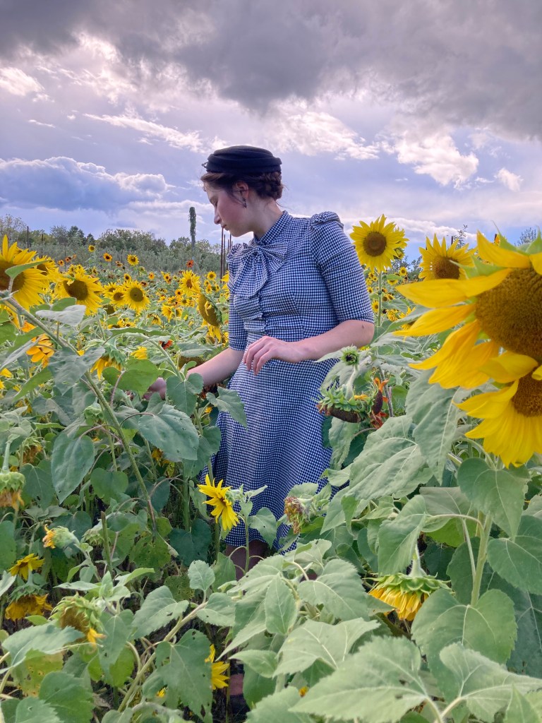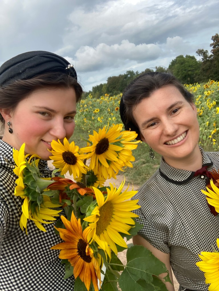 It all started when I got a black and white checked dress, and then my teacher Sara realized she had one that was very similiar. Of course the only logical thing to do with this information was dress up and go take photos in a sunflower field!