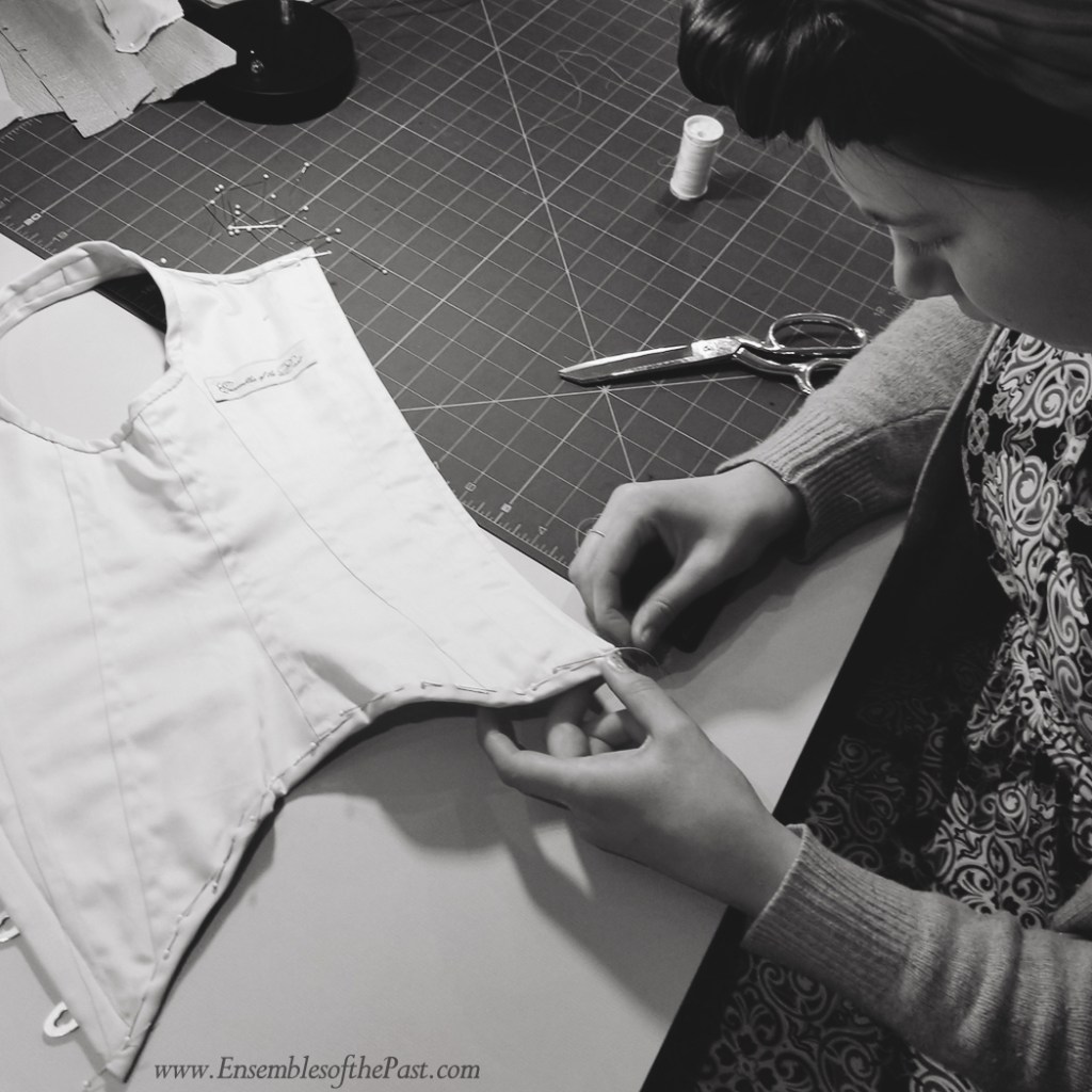 Hem-stitching is a good example. Before I started my apprenticeship my hem-stitch was much too visible. I was grabbing too much fabric with each stitch instead of a single thread. I’ve learned lots of other stitching methods too, like overcasting and perfecting my hand running-stitch! Things like working with darts and shaping panels to get the right fit have been very useful for my own projects! With this new knowledge I finally felt ready to dive into intimidating projects of my own like my first corset, custom made to me! I feel that a proper fit is so important to dressmaking, and spending extra time just getting that fit is well worth it!