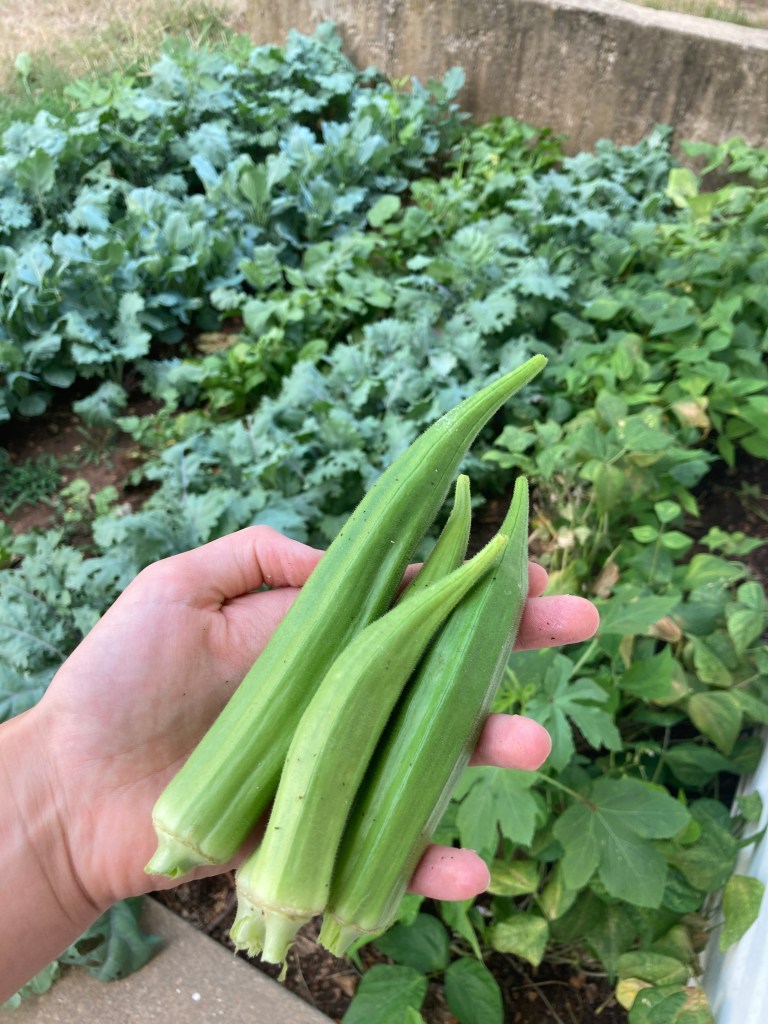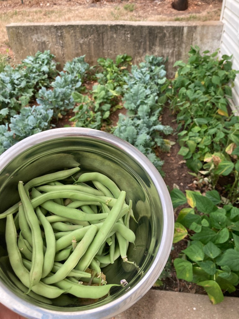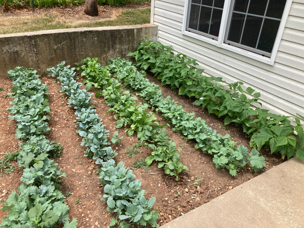 Amazingly, the seeds sprouted. Beans, Kale, Collards, Okra, and Radishes slowly popped their tender leaves from the ground. They were growing! (I had chosen these hardy plants for the best chance of a crop.)