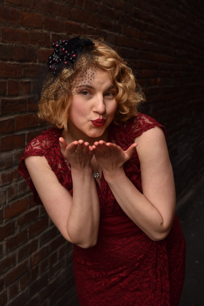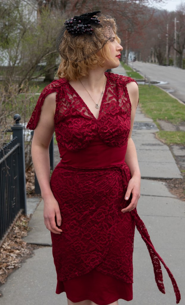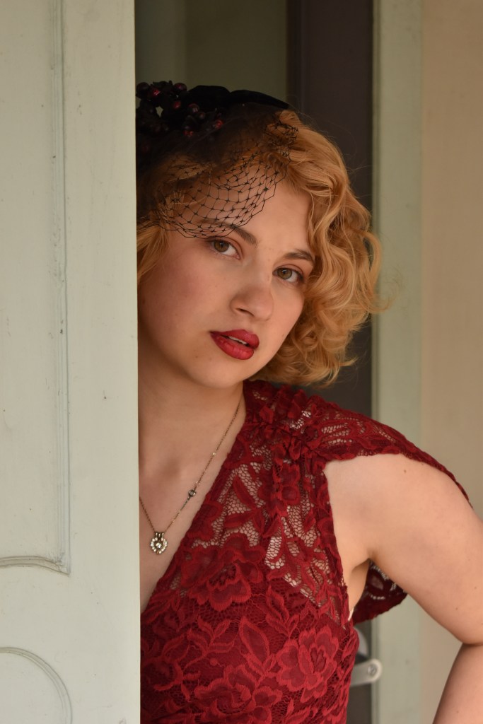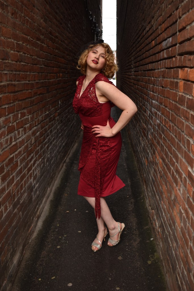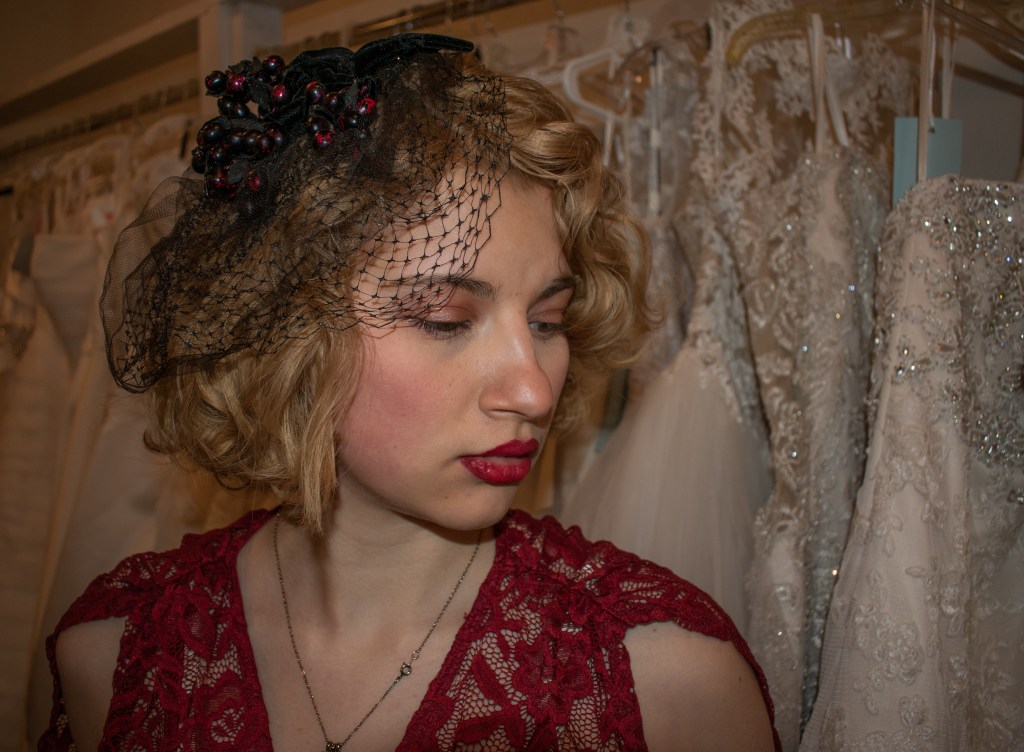 The berry fascinator hat is true vintage and the dress I bought from Belle Poque!
